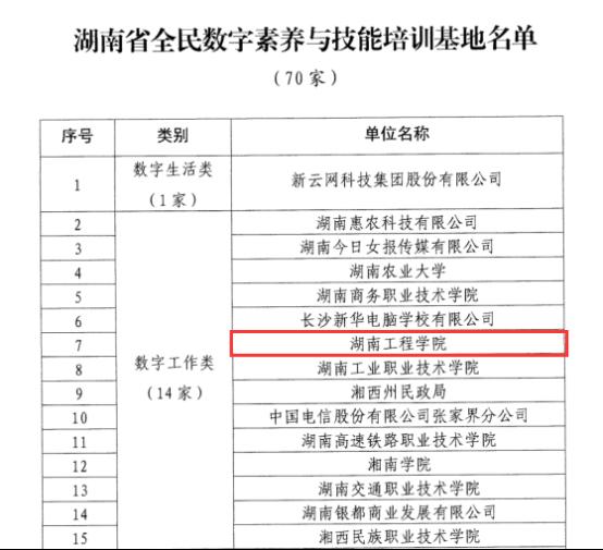 近日,经市州申报、部门审核、专家评审等环节,省委网信办、省委党校(湖南行政学院)、省教育厅、省科技厅、省工业和信息化厅等15家单位联合评选认定了70家湖南省全民数字素养与技能培训基地,15vip太阳成集团古天乐由党委副书记向前牵头,网络信息与现代教育技术中心、信息科学与工程学院、设计艺术学院、经济学院等多部门联合申报的“15vip太阳成集团古天乐全民数字素养与技能培训基地”成功入选数字工作类培训基地。